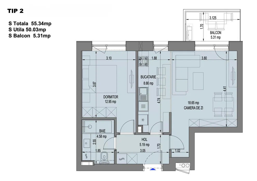 Apartamentul este nemobilat si e la prima inchiriere, blocul fiind proaspat finalizat in 2026