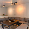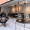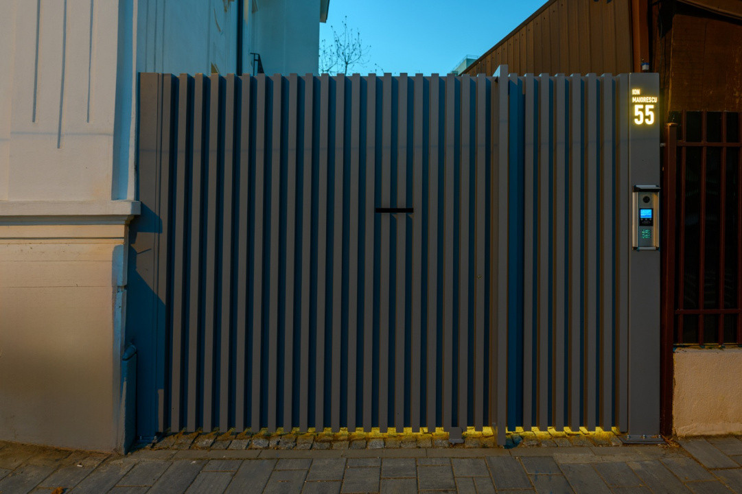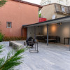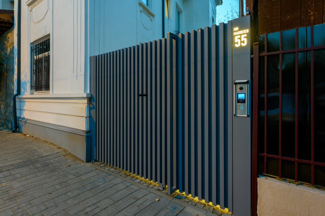 Vila in care se afla apartamentul beneficiaza de o curte interioara spatioasa in care se gaseste o terasa acoperita si mobilata cu mese si canapele, un semineu exterior, banci pentru relaxare si spatiu verde.