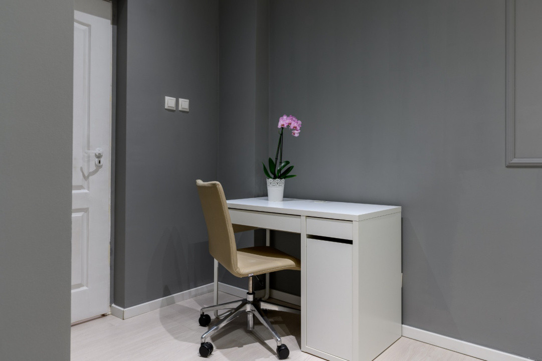 - mobilier modern si functional, pat dublu si canapea extensibila, birou de lucru