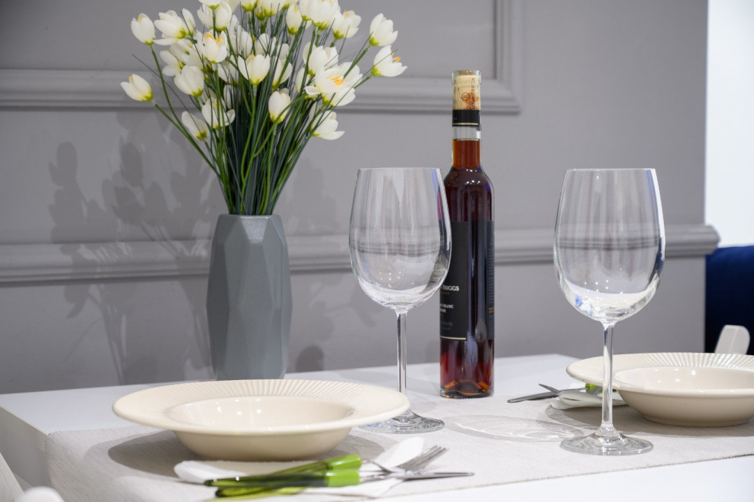 - masa extensibila, frigider, cuptor electric, plita, hota, aparat A/C, chiuveta, masina de spalat rufe, centrala termica proprie pe gaz, senzor ambiental, senzor gaze, videointerfon