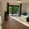 Apartamentul este luminos, cu vedere către o zonă liniștită de vile, și oferă un living spațios cu bucătărie open-space, complet mobilat modern cu piese Mobexpert. Bucătăria este complet utilată cu electrocasnice premium Bosch și bar încorporat, ideal pentru confortul de zi cu zi.