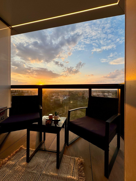 Apartamentul este la prima închiriere, fiind amenajat complet în stil high-end, cu mobilier Rovere și piese realizate la comandă, în urma unui proiect de design interior. Spațiul este optim compartimentat și include zonă de living, zonă de dormit, bucătărie separată, baie, balcon și debara.