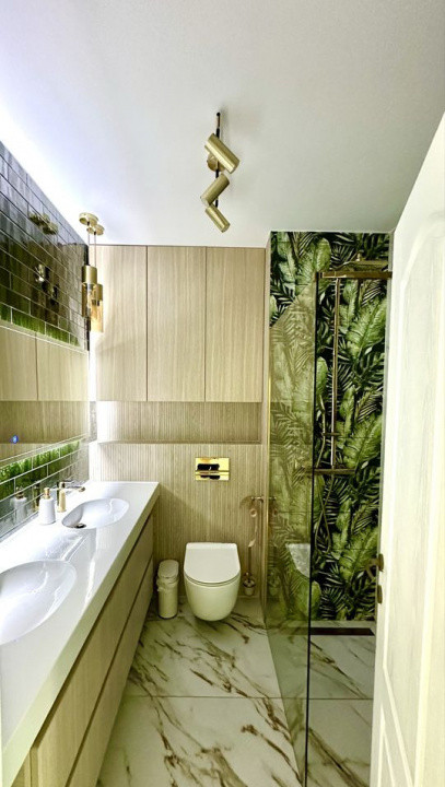 Bucătărie complet utilată: plită inductie, mașină de spălat vase, cuptor electric, cuptor microunde, hotă, frigider