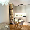 Studio-ul se află la etajul 2 din 4, are o suprafață utilă de 41 mp și o logie spațioasă de 7,3 mp, perfectă pentru momente de relaxare. Finisajele și dotările sunt de înaltă calitate: mobilier realizat la comandă din MDF, electrocasnice Bosch, Franke și LG, aer condiționat Daikin Inverter, canapea și pat The Home.