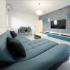 Compartimentarea este eficientă și funcțională: living generos, bucătărie separată, două dormitoare, două băi și o debara utilă pentru depozitare. Finisajele sunt de calitate superioară, iar dotările includ tâmplărie PVC Salamander cu geam tripan, centrală termică proprie, sistem de climatizare cu tubulatură încastrată și unitate AC de 18.000 BTU, interfon video, prize modulare, precum și infrastructură completă pentru TV și internet. Scara este monitorizată video, contribuind la un nivel ridicat de siguranță.