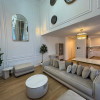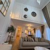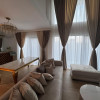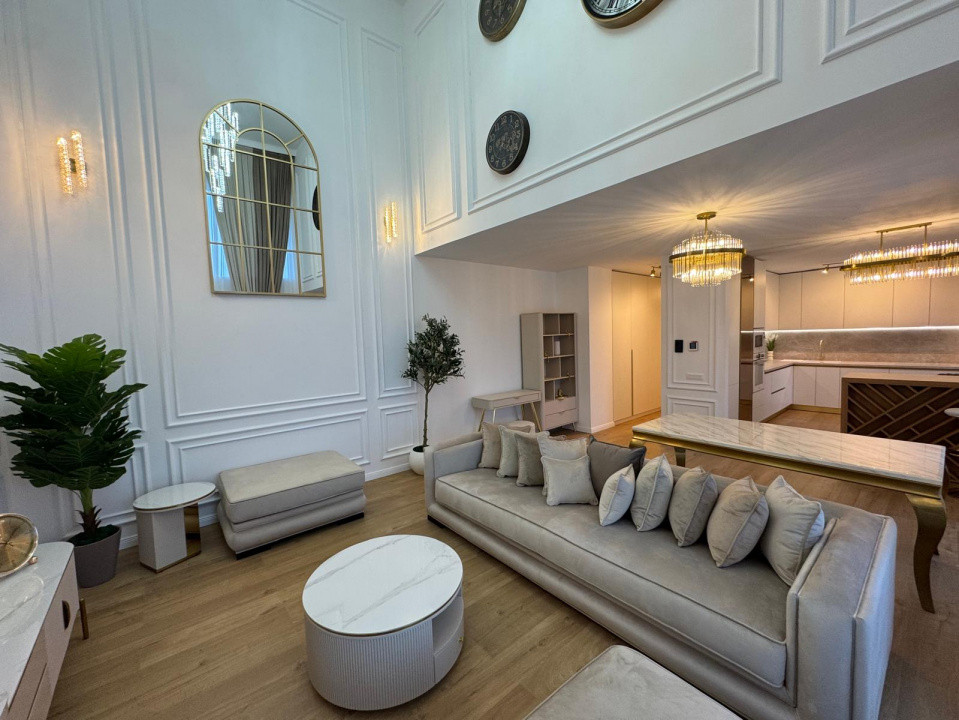 Interiorul este definit de un living cu dublă înălțime (tip loft), inundat de lumină naturală datorită ferestrelor pe toată înălțimea, oferind un ambient elegant și aerisit. Zona de zi este completată de dining și bucătărie complet mobilată și utilată, gândite pentru confort și funcționalitate.