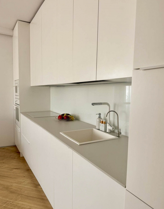 Zona de zi este organizata open space, cu living si bucatarie integrate, oferind un spatiu aerisit si potrivit pentru socializare sau lucru de acasa.