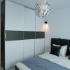 Apartamentul beneficiază de o compartimentare eficientă, cu living spațios și luminos, două dormitoare confortabile, bucătărie complet mobilată și utilată premium, precum și două băi moderne. Suprafața generoasă și lumina naturală abundentă creează un ambient elegant și funcțional, ideal pentru rezidență pe termen lung.