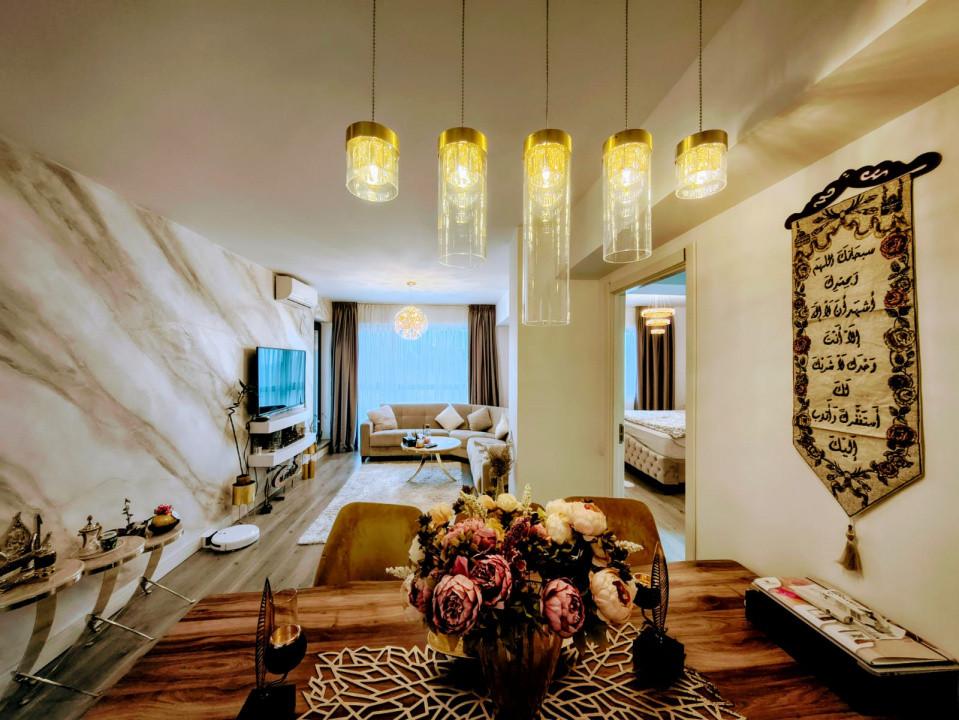 Apartamentul este compus din hol si living spatios amenajat cu zona dining si iesire pe balcon , bucatarie inchisa mobilata si utilata premium , un dormitor matrimonial amenajat cu dressing separat, si o baie matrimoniala prevazuta cu cada si dus , plus inca o a 2-a baie de serviciu cu dus walk-in care se afla la iesirea din living, si inca un dormitor cu dressing amenajat care poate fi folosit ca al 2-lea dormitor sau birou .