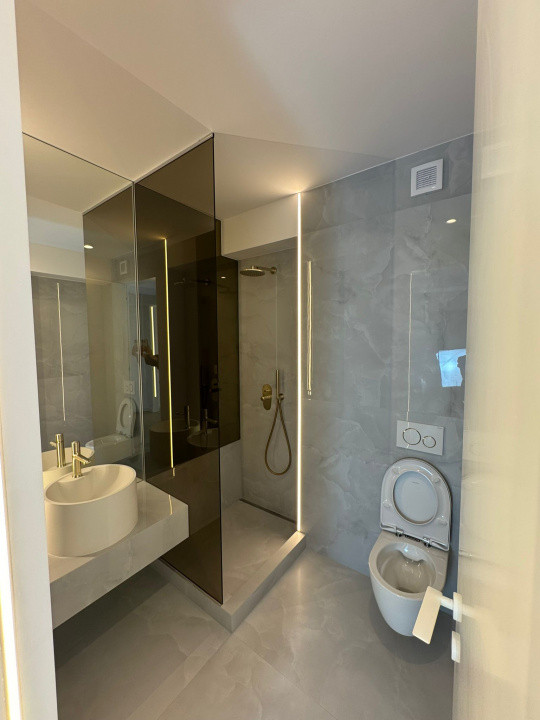 Finisaje de calitate înaltă: fațadă ventilată SwissPearl, tâmplărie aluminiu Schuco, ascensoare Otis, tâmplărie exterioară & uși securizate, obiecte sanitare de marcă, pardoseli premium, sisteme de iluminat și ventilare moderne.