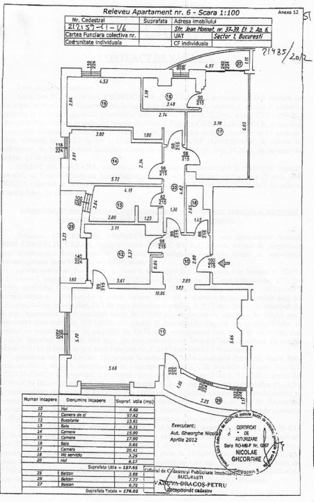 Are o suprafață generoasă de 176 mp: sufragerie de 60 mp, 3 dormitoare (16 mp, 18 mp, 21 mp), 3 grupuri sanitare, bucătărie separată cu usi glisante catre hol si living, hol spațios și 3 balcoane. Apartamentul este pe un singur nivel, fără scară interioară.