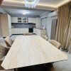 Livingul spațios, cu accente de lumină ambientală și mobilier contemporan, oferă un cadru ideal pentru relaxare și socializare. Zona de dining se contopește armonios cu livingul, fiind completată de o bucătărie modernă, perfect integrată în conceptul open-space.