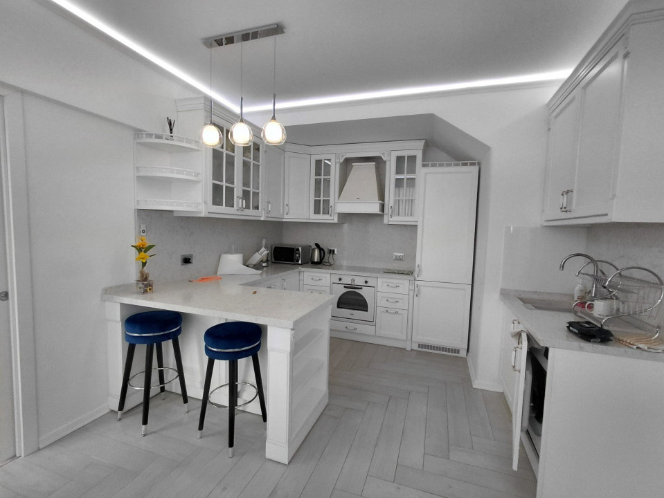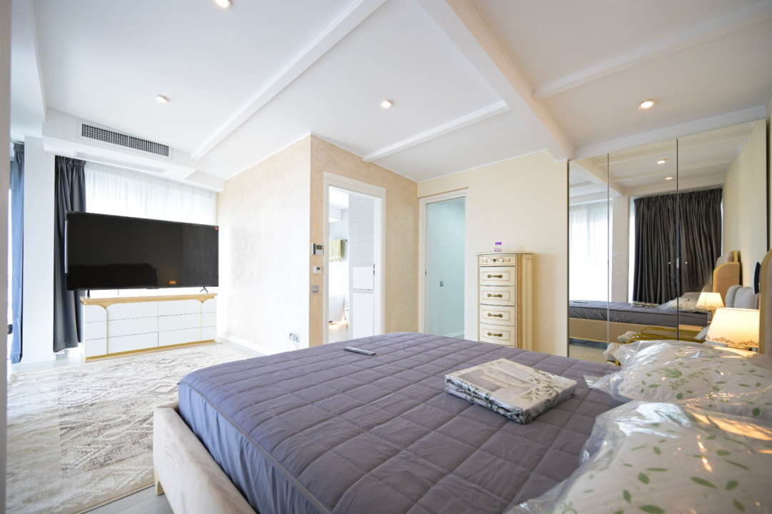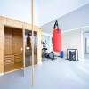 Este complet mobilat si utilat, cu sala de sport si sauna incluse. Geamurile sunt prevazute cu draperii si rulouri exterioare actionate prin telecomanda.