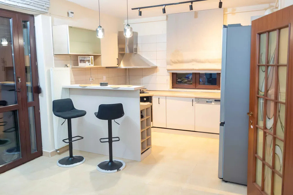 Bucătărie nouă, complet echipată (cuptor, plită inducție, mașină de spălat vase, frigider, mașină de spălat rufe, aparat de cafea – toate Bosch 2025)