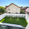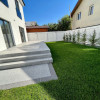 Terenul liber de 300mp este amenalat cu spatiau suficient pentru 2-3 masini si o gradina interioara cu gazon si zona verde pentru un spatiu de relaxare si confort. Materialele folosite pentru exterior sunt granit , marmura pt terase si gazon prevazut cu aspensoare .