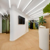 Recepție elegantă la intrare, 2 zone open space cu stații de lucru complet echipate, birou de management separat, 3 săli de ședințe moderne pregătite pentru prezentări, zonă dedicată de relaxare și discuții, bucătărie complet utilată, grupuri sanitare cu finisaje premium și spații de depozitare integrate.