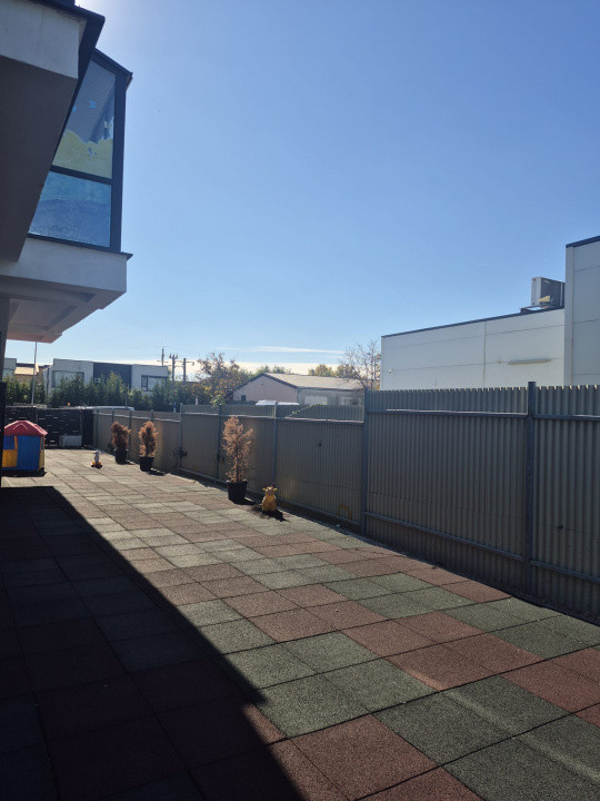 - Curte generoasă de 400 mp, îngrădită cu gard metalic și uși de acces cu cod.